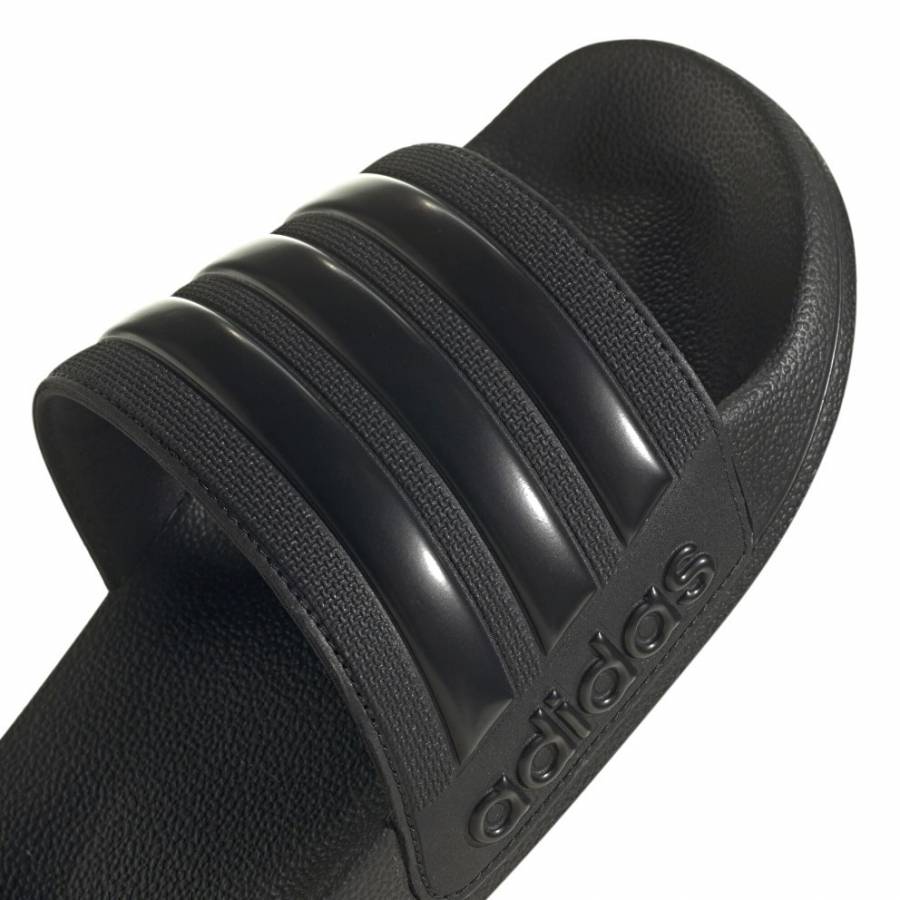 Το adidas λογότυπο και οι τρεις χαρακτηριστικές ρίγες της adidas ολοκληρώνουν το εμβληματικό στυλ των Adilette.