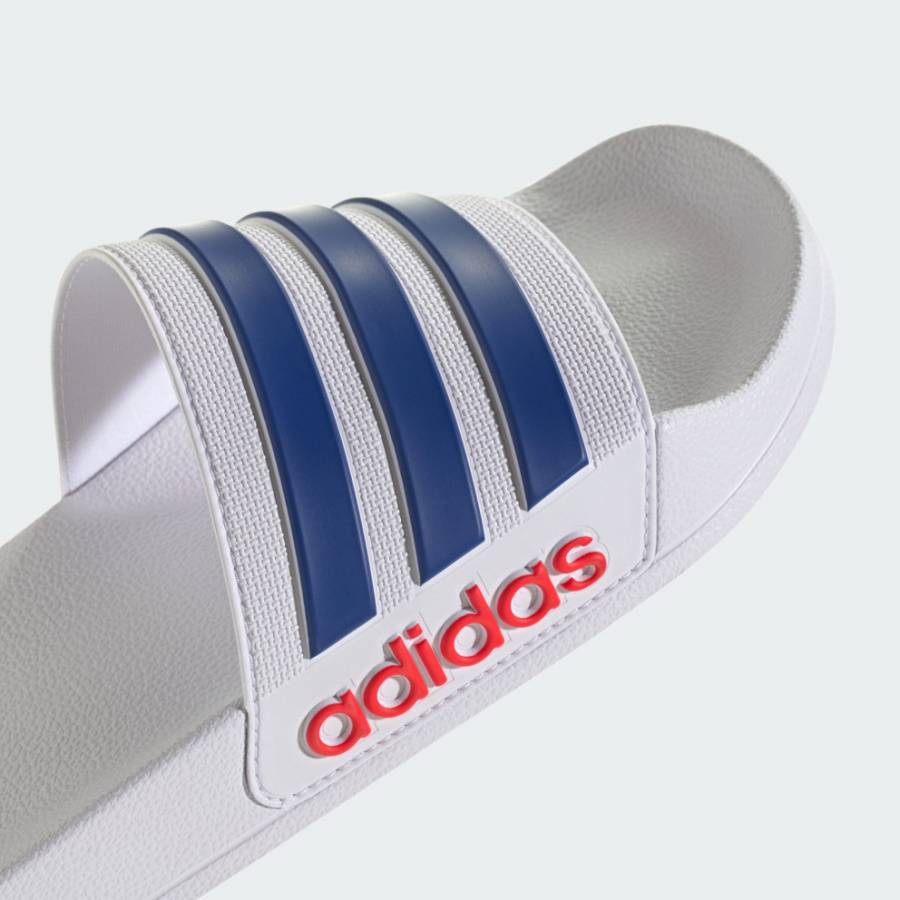 Το adidas λογότυπο και οι τρεις χαρακτηριστικές ρίγες της adidas ολοκληρώνουν το εμβληματικό στυλ των Adilette.