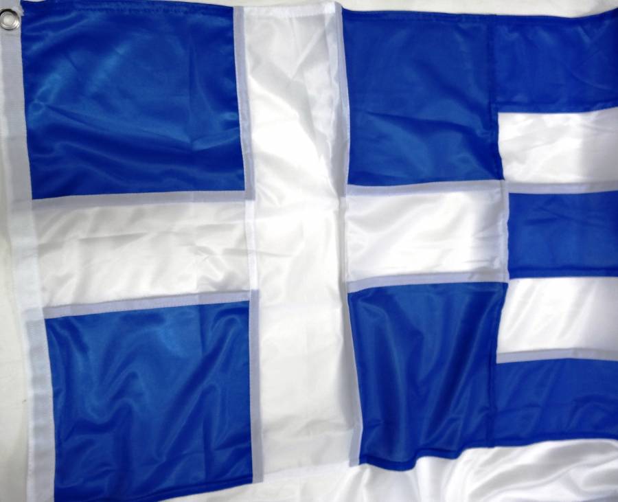 Ελληνική σημαία από πολυεστερικό ύφασμα ακρυλική ραφτή κομμάτι κομμάτι.