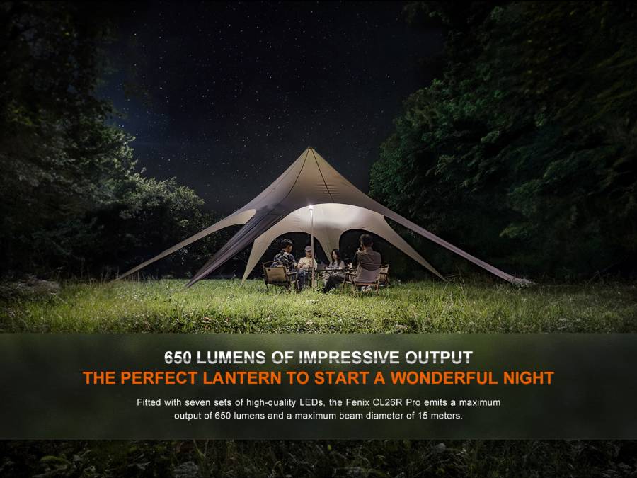 Το Fenix CL26R Pro είναι ανθεκτικό στη βροχή και στη σκόνη ενώ ταυτόχρονα είναι ελαφρύ και ανθεκτικό αποτελεί τον ιδανικό σύντροφο στο κάμπινγκ.