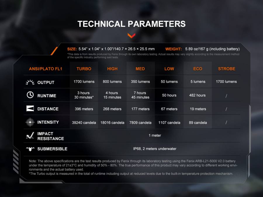 Κανένα περιβάλλον δεν είναι πολύ σκληρό για το Fenix PD36R V2, καθώς διαθέτει αξιοσημείωτη αδιάβροχη βαθμολογία (IP68), εξασφαλίζοντας βέλτιστη λειτουργικότητα ακόμη και στις πιο υγρές συνθήκες.