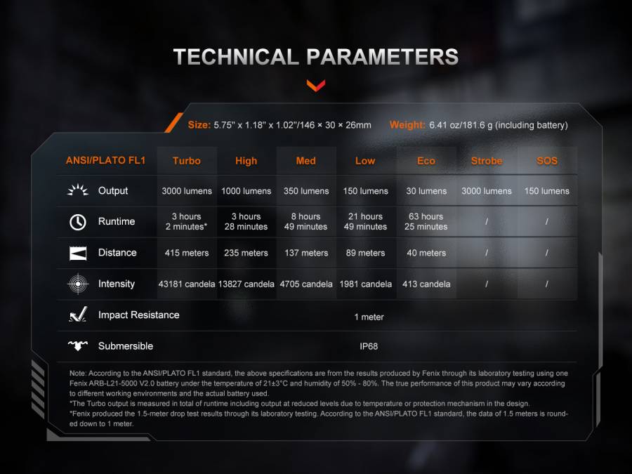 Προσφέροντας εντυπωσιακή φωτεινότητα 3000 lumens και ρίχνοντας φως στα 415 μέτρα, ο PD36R ACE είναι κατασκευασμένος για χρήστες που θέλουν περισσότερη ισχύ, μεγαλύτερη εμβέλεια και περισσότερο έλεγχο.