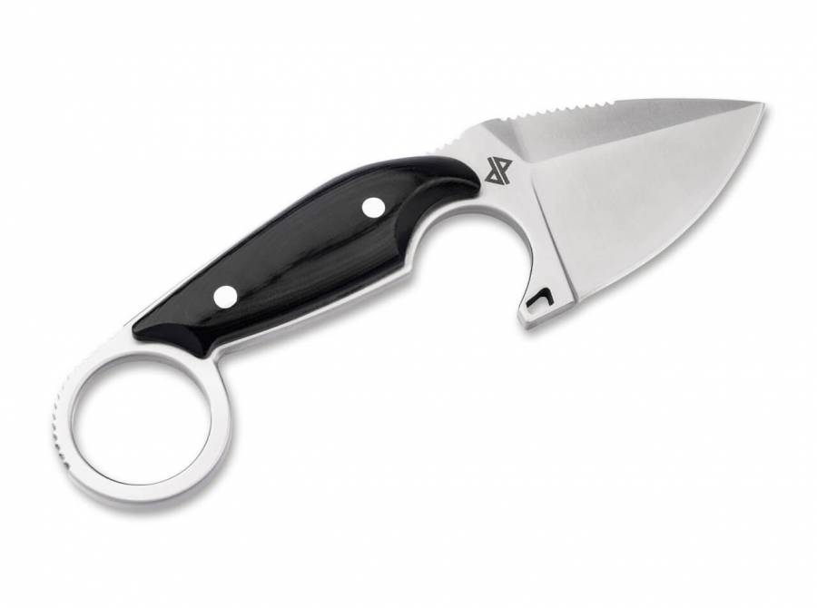 Το συμπαγές μαχαίρι με τη σατινέ, σταθερή λεπίδα από 440B επιδεικνύει μέγιστη δεξιότητα κατά την κοπή χαρτοκιβωτίων, την κοπή σχοινιών ή για μικρότερες υπαίθριες δραστηριότητες. Οι πλήρεις λαβές και οι λαβές στο πίσω μέρος της λεπίδας, η βάση για τον αντίχειρα και ο δακτύλιος στο άκρο της λαβής, τυπικά των Karambit, εγγυώνται μέγιστη σταθερότητα και δυνατές κοπές με πλήρη έλεγχο.