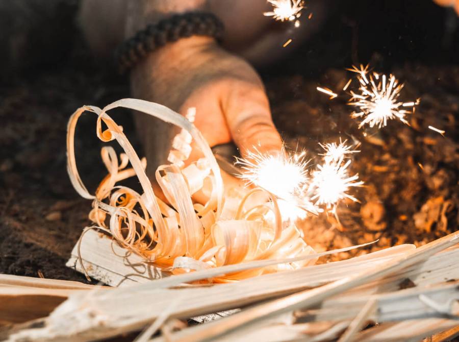 Ένα κοντό μέρος του πίσω μέρους της λεπίδας σχηματίζει αιχμηρές άκρες 90° και στις δύο πλευρές για την ανάφλεξη σπινθήρων από το παρεχόμενο προσανάμμα.