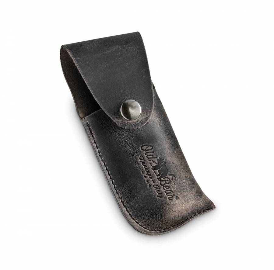 Θήκη "Old Bear" για τη σειρά μαχαιριών ή κλαδέματος, σε μαύρο ανθρακί δέρμα με λαδωμένη υφή.