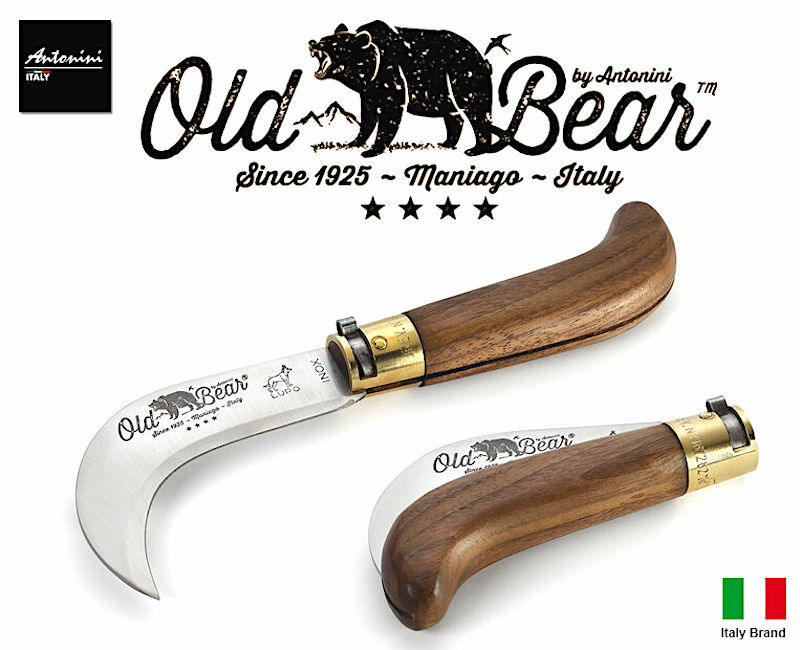 "Old Bear Classical Pruning" knife with walnut wood handle, stainless steel blade (size "L")