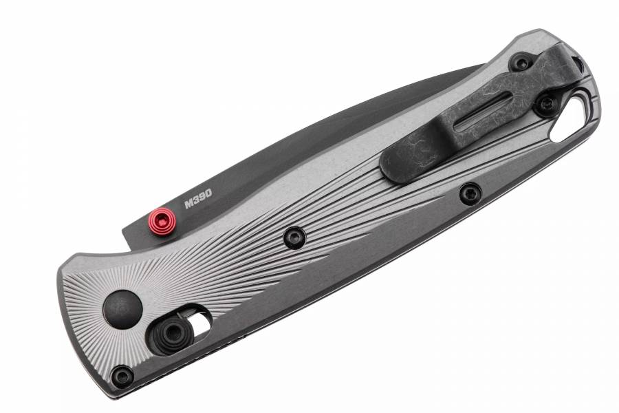 Η υψηλής απόδοσης λεπίδα του είναι κατασκευασμένη από χάλυβα υψηλής ποιότητας τύπου M390 με φινίρισμα Cerakote® και διαθέτει πείρους από ανοδιωμένο αλουμίνιο για ασφαλές άνοιγμα με τον αντίχειρα.