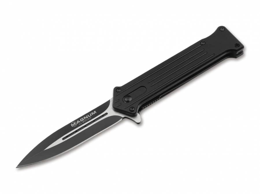 Το Magnum Intricate Compact διαθέτει λεπίδα με αιχμή λόγχης κατασκευασμένη από ανοξείδωτο ατσάλι 440A, τροχισμένη στη μία πλευρά, με εντυπωσιακό δίχρωμο φινίρισμα και άνοιγμα με υποβοήθηση ελατηρίου από πτερύγιο.