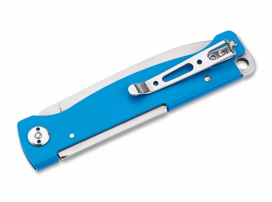 Ως ένα αξιόπιστο σουγιάς τσέπης με slipjoint και λαβή από μπλε λακαρισμένο ανοξείδωτο ατσάλι, το Atlas συνδυάζει τη νοοτροπία "μπορώ να το κάνω" με απλή κομψότητα και έντονη ευελιξία.