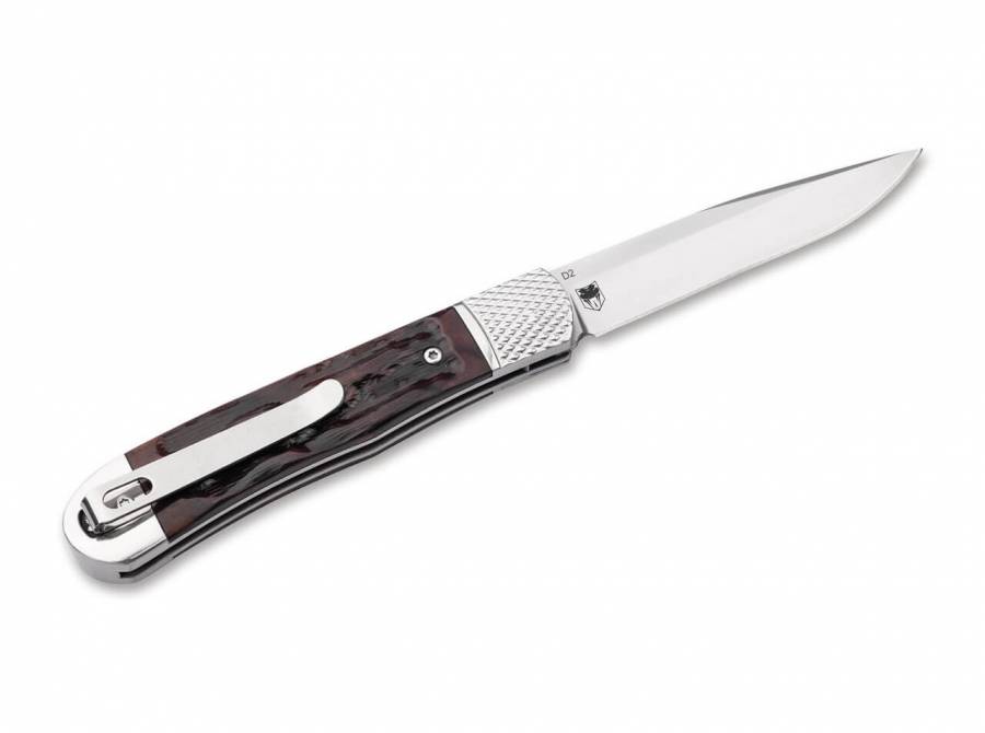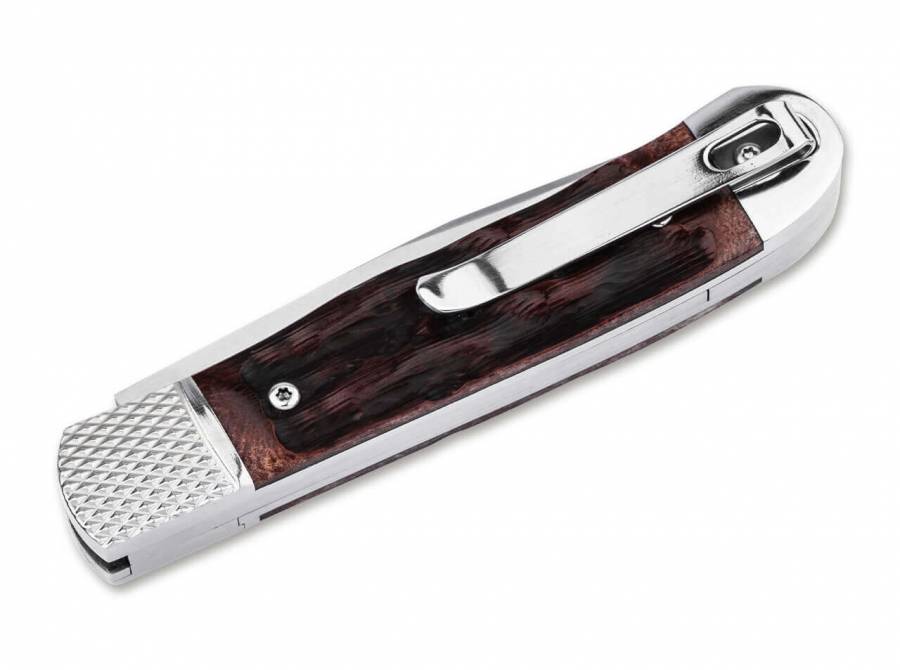 Οι καθαρές γραμμές στρογγυλοποιούνται αρμονικά από ένα κλιπ ανατροπής (r), το οποίο επιτρέπει τη μεταφορά του μαχαιριού σε βάθος.