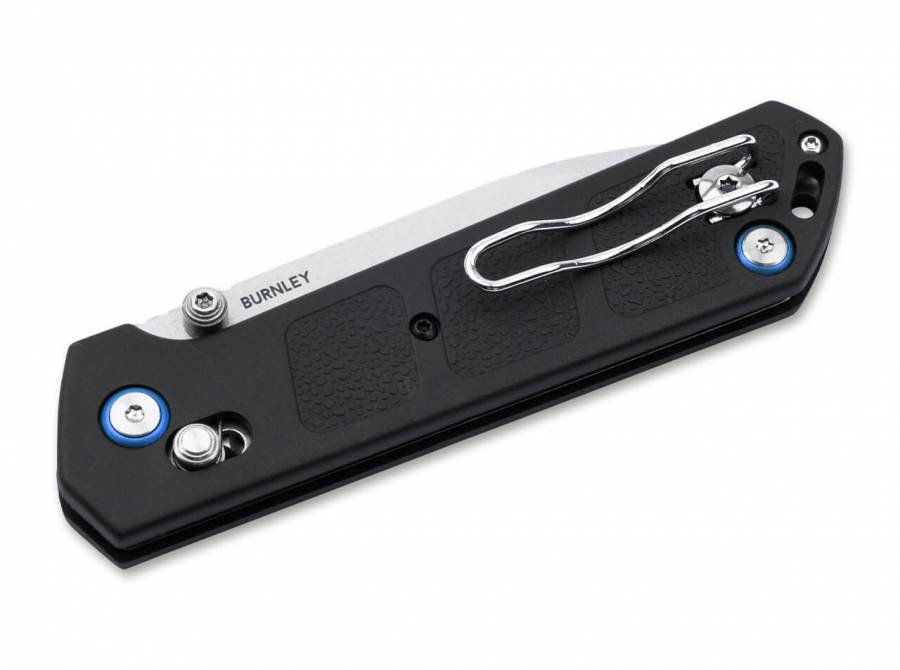 Η σατινέ λεπίδα με σημείο πτώσης από D2 ανοίγει ομαλά χάρη στα ρουλεμάν πάνω από το αφαιρούμενο μπουλόνι αντίχειρα, ενώ η ασφάλεια της εγκάρσιας ράβδου εγγυάται ένα διαισθητικό, ασφαλές και πρακτικό ξεκλείδωμα του μαχαιριού.