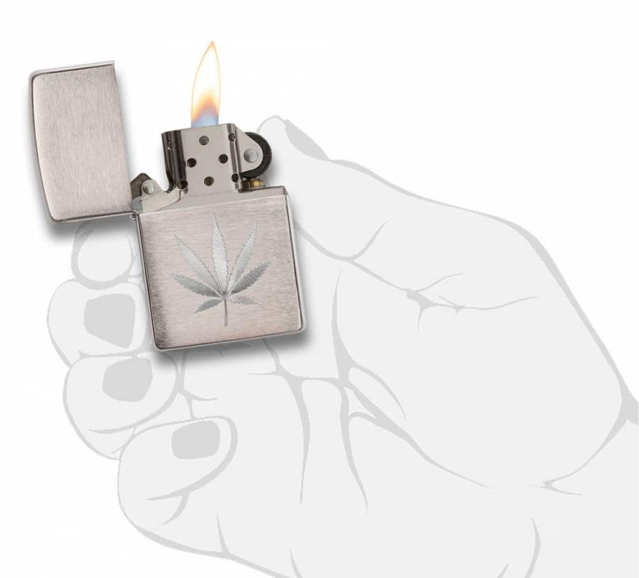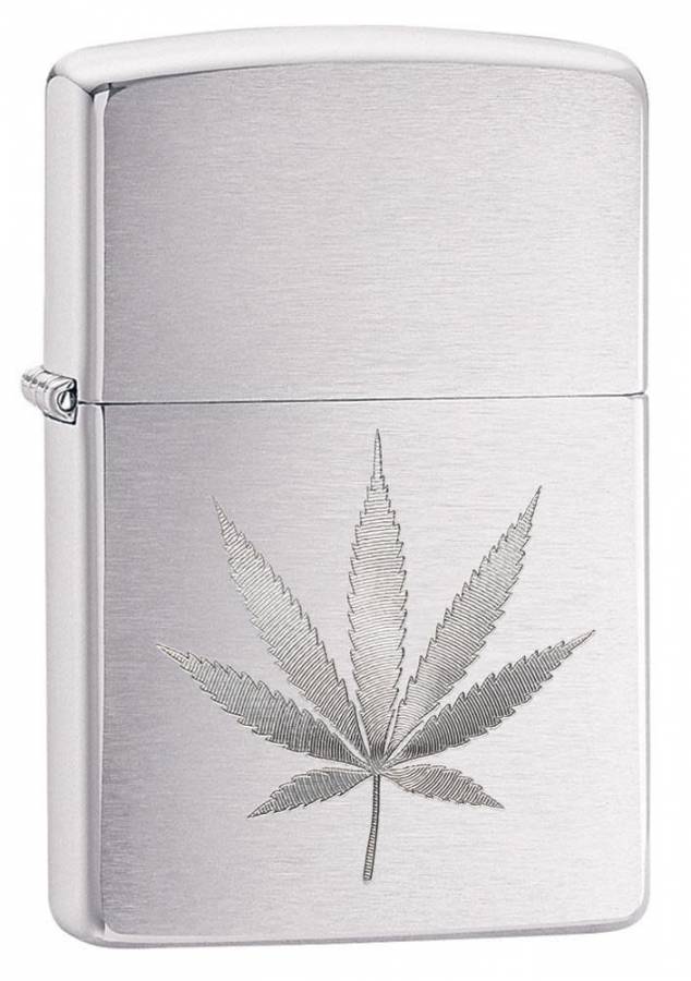 Αυτό το μοντέλο διαθέτει ένα απλό αυτόματο φύλλο μαριχουάνας χαραγμένο στην επιφάνεια ενός κλασικού αναπτήρα Brushed Chrome.
