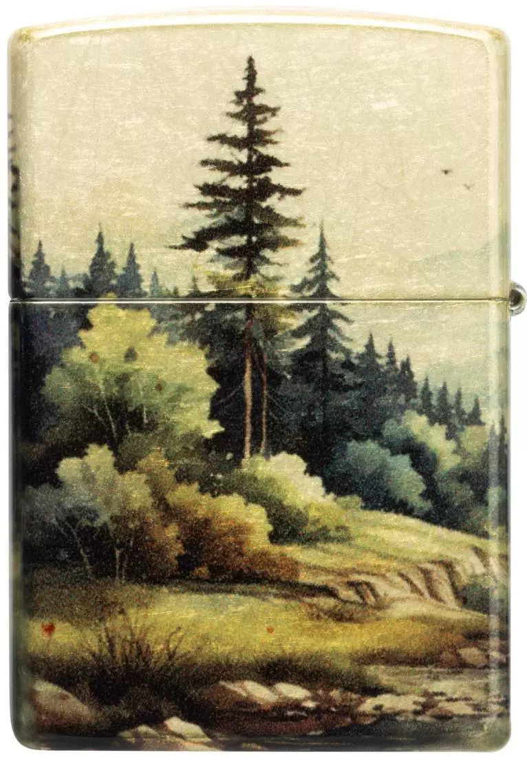 Διαθέτει έγχρωμη εκτύπωση που περιβάλλει ολόκληρο τον αναπτήρα, απεικονίζοντας μια σκηνή άγριας φύσης με δάση, βουνά και ποτάμια.