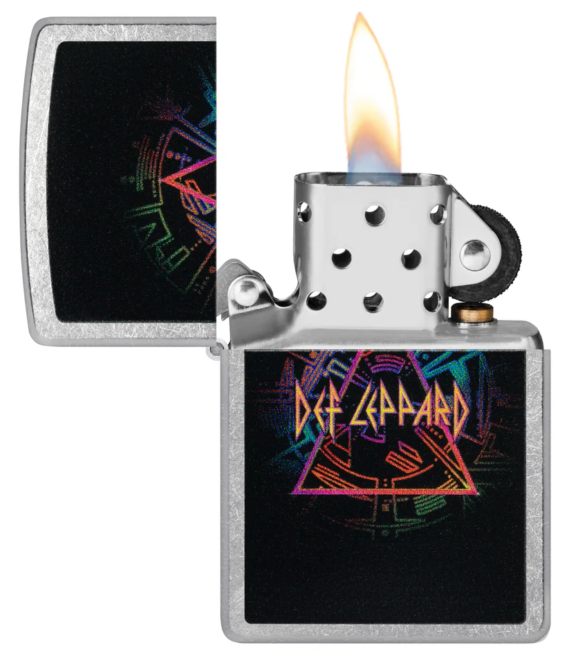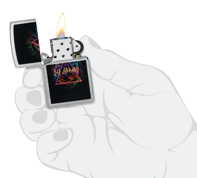 Ιδανικός για κάθε οπαδό των Def Leppard, αυτός ο κλασικός μαύρος ματ αναπτήρας διαθέτει το λογότυπο του συγκροτήματος και αποτίει φόρο τιμής στο εμβληματικό εξώφυλλο του άλμπουμ Hysteria των Def Leppard σε ένα έντονο σχέδιο έγχρωμης εικόνας.