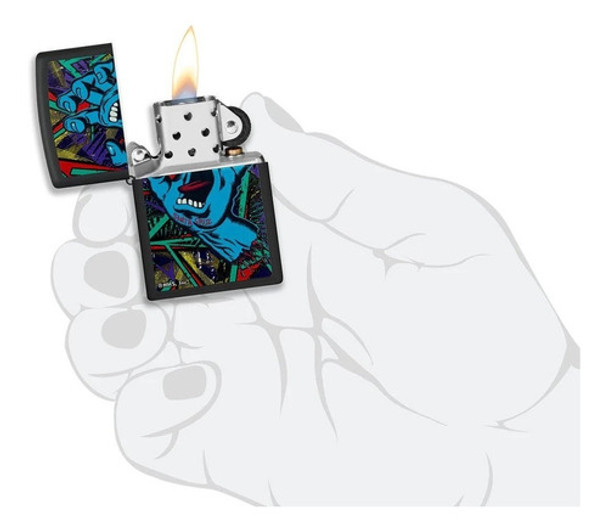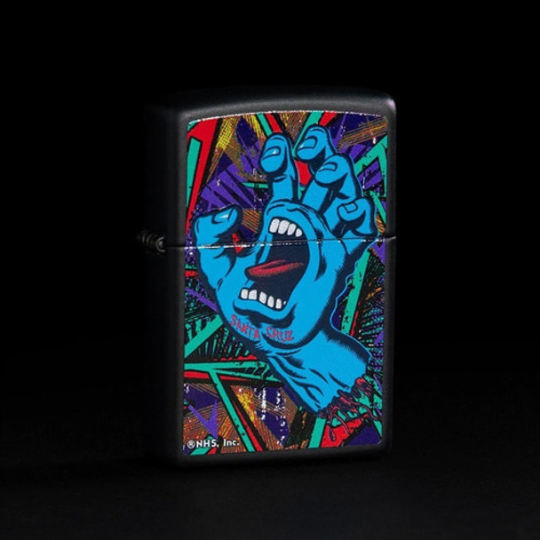 Οαναπτήρας Zippo 48415 είναιέναςαυθεντικός, αντιανεμικόςαναπτήρας Zippo μεσχέδιο Screaming Hand τηςμάρκας skateboard Santa Cruz, σε μαύρο ματ φινίρισμα.