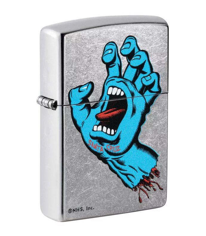 Ο αναπτήρας φέρει το εμβληματικό σχέδιο "Screaming Hand" της Santa Cruz Skateboards, που δημιουργήθηκε από τον καλλιτέχνη Jim Phillips.