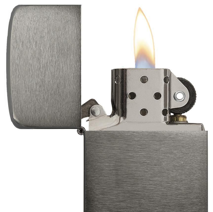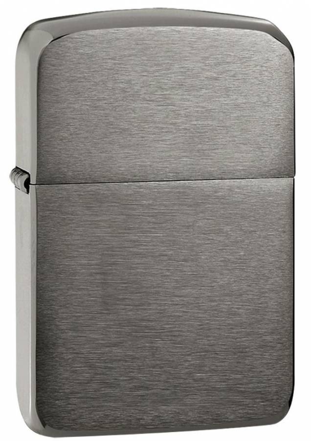Κλασικός και διαχρονικός αναπτήρας Zippo Replica 1941 με μαύρο βουρτσισμένο χρώμιο και επίπεδη επιφάνεια.
