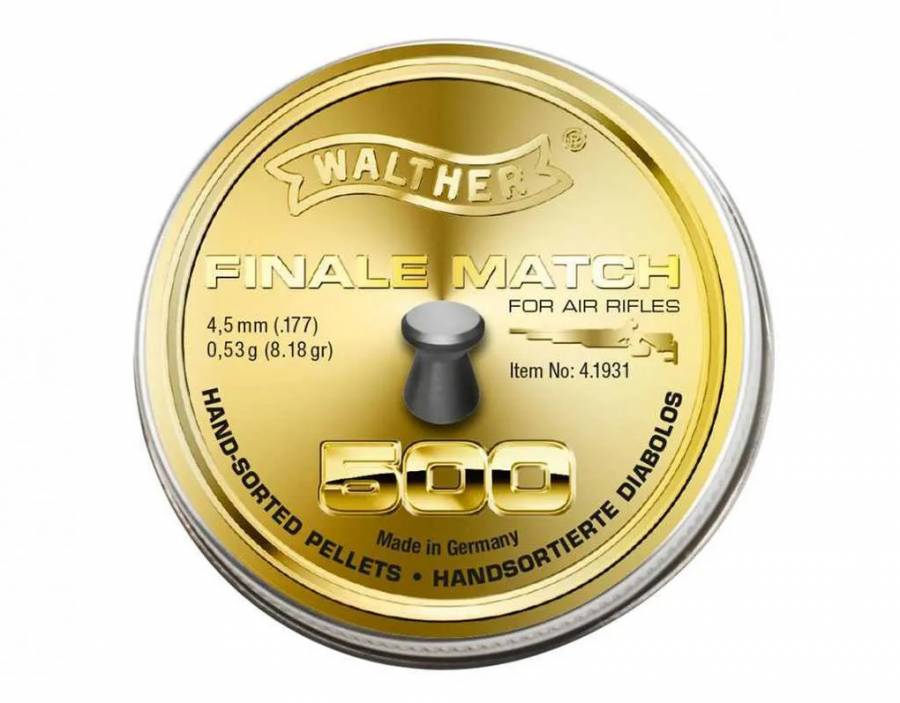 Βλήματα Walther Finale Match με πλακέ κεφαλή 4,5 mm (.177) σε κουτί των 500.